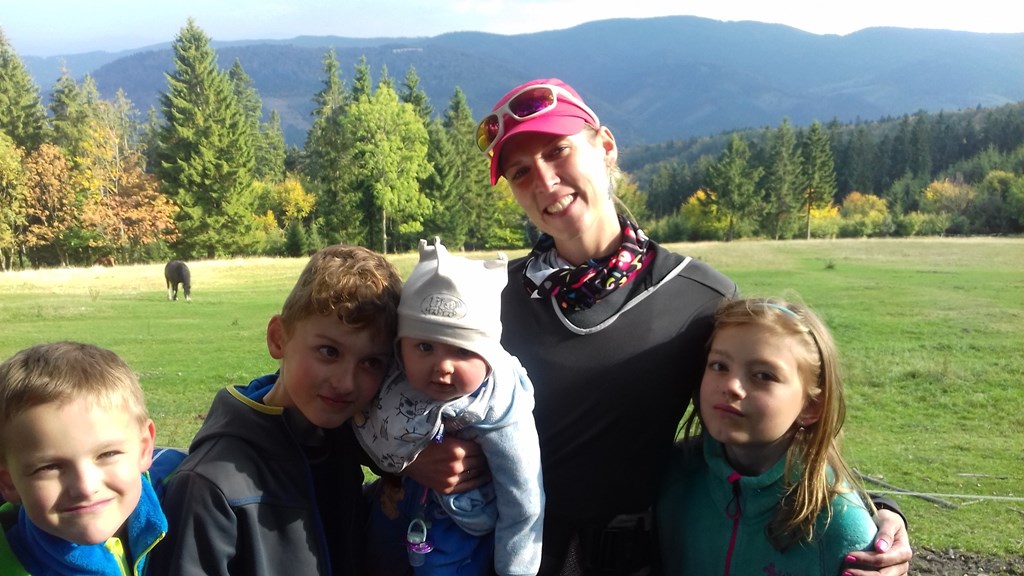 Sobota začíná stejně jako pátek. Myslím tím, že se pod kopec přesunujeme busem ( tatínci jsou na nějaký čas ponaučeni). Z Dolní Lomné jdeme 5 km stoupáním ke Kamenné chatě. Je krásně a teplo takže se dá i naboso. Po hřebeni dobýváme nejvyšší vrchol pobytu Velký Polom 1067 m n.m. a od kapličky na Muřínkovém vrchu padákem k chatě.