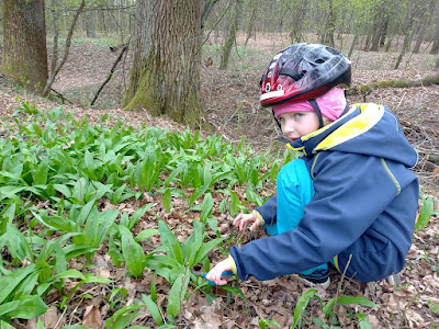 Medvědí česnek sklízíme taky na "naši" mini zahrádce v Porubském lese. Bereme ho ale jen trochu a stříháme opatrně, abychom neustřihli zárodky květů. To vše proto, aby se v příštích letech plocha zahrádky zvětšila.